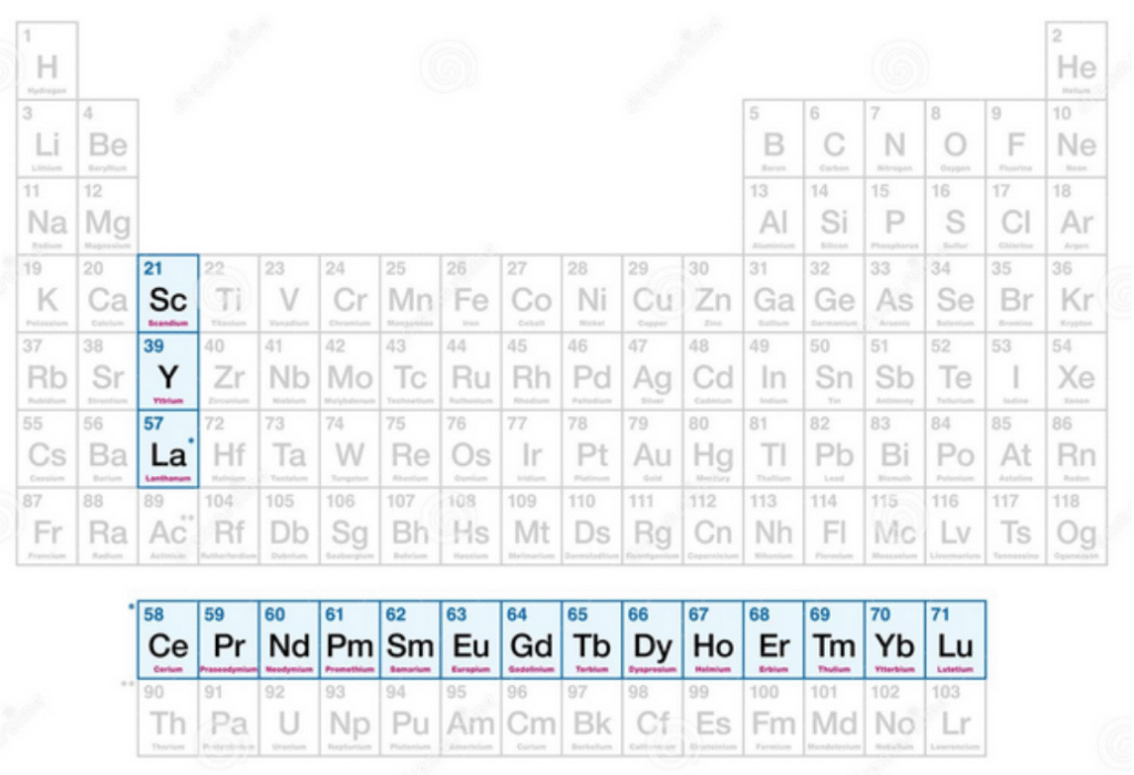 O termo “terras raras” refere-se a um grupo de 17 elementos químicos da tabela periódica: o escândio (Sc), ítrio (Y) e os 15 elementos do grupo dos lantanídeos, que vão do lantânio (La) ao lutécio (Lu). Apesar do nome, não são necessariamente raros em termos de abundância na crosta terrestre alguns deles são mais comuns que metais como o cobre ou o chumbo. O que torna as terras raras “raras” é a dificuldade de encontrá-las em concentrações economicamente viáveis para mineração e separação, já que geralmente estão dispersas em pequenas quantidades e misturadas entre si.