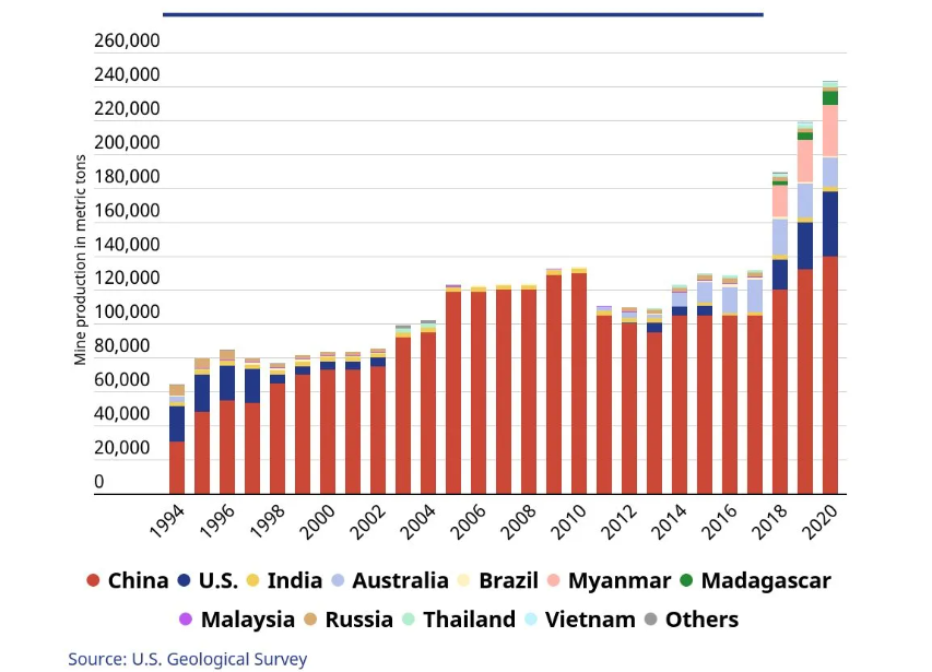 A China, ao longo das décadas, investiu pesadamente no desenvolvimento de sua indústria de terras raras, controlando não apenas a mineração, mas também o refino e a cadeia produtiva. Isso lhe confere uma vantagem estratégica em setores como eletrônicos, energia renovável e armamentos.